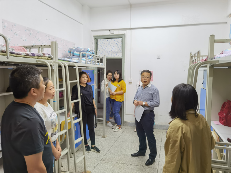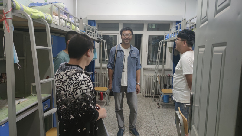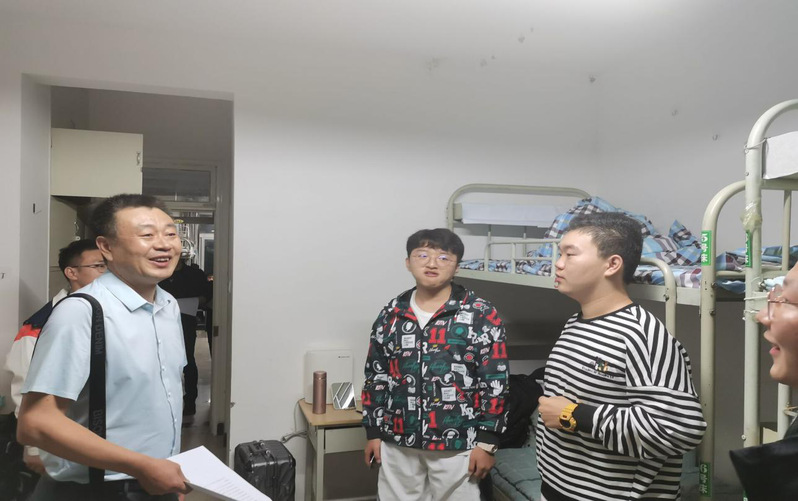9月10日晚,德赢vwin体育官网党委书记赵辉、副院长薛中华、党委副书记陈芳、正处级辅导员孟汇海、研究生秘书郭昊、全体专职辅导员及2020级各班班主任对新生宿舍进行走访慰问。