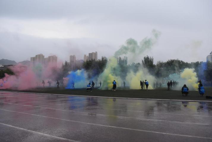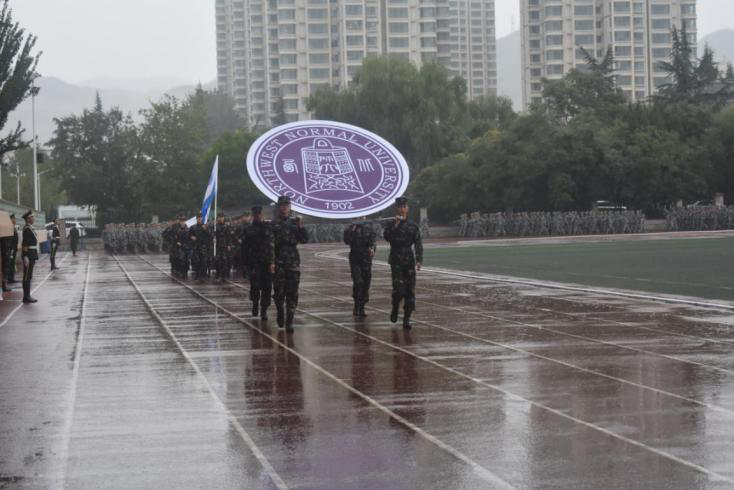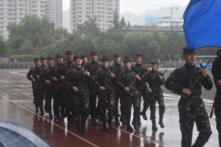 由德赢vwin体育官网与生命科学学院、旅游学院组成的600人方队迈着铿锵的步伐入场,他们用手中的红板拼出对祖国、对学校的热爱,一句满怀气势的“知术欲圆,行旨须直”喊出了师大学子拼搏向上、积极进取的精神风貌。雨水打湿了帽檐,淋湿了迷彩,模糊了天空,但也打湿不了那颗坚定热血的心。