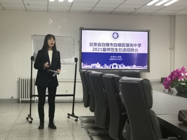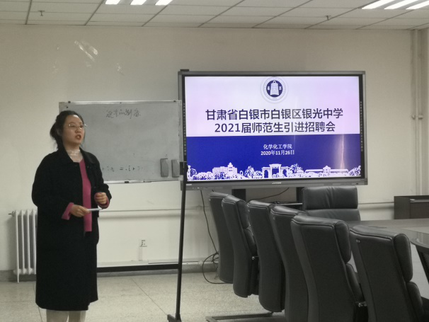 11月27日下午,德赢vwin体育官网在新校区综合实验楼11楼会议室举办了甘肃省白银市白银区银光中学2020届师范生引进招聘会。招聘会由白银市白银区银光中学化学组组长主持召开,共有13名2021届毕业生参加了此次师范生引进招聘会。