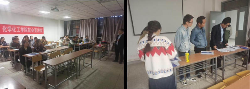 丁晨飞先生对公司的研发中心、生产基地和产业成果等情况做了大致介绍,毕业生们就薪资待遇等方面提出问题并积极地同公司负责人讨论,现场氛围良好。最后,毕业生们纷纷投递个人简历,积极参与面试考评。