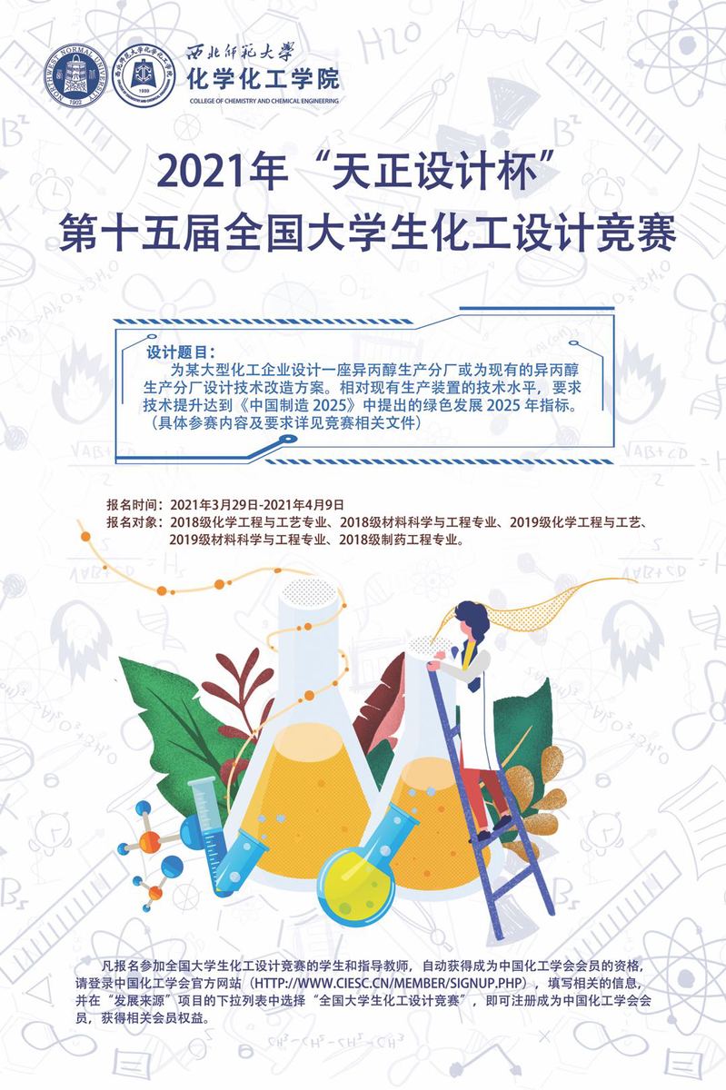 化工设计竞赛为爱好化工专业、学有特长的大学生提供展示才能的舞台,是检验学生学习综合能力、锤炼学生专业技能、提升职业能力的重要平台,德赢自2016年参加该设计竞赛以来,均获得了西北赛区和国赛中较好的成绩,希望全院全体同学抓住机会,积极参与,展示化学化工工程学院良好学风及学生风采,并祝愿各位参赛同学取得优异的成绩。