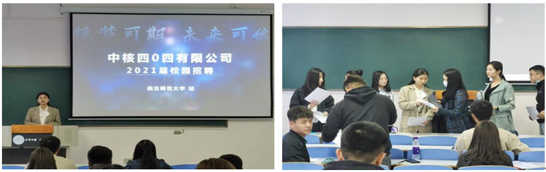 2021年4月9日下午,德赢在新校区综合教学楼103教室举办中核四〇四有限公司招聘宣讲会。本次宣讲会由该公司到场的五位负责人共同主持召开,德赢数十名2021届本科毕业生及研究生到场参加招聘。公司负责人通过PPT、宣传片向毕业生们介绍公司的光辉历史、主营方向、公司架构、员工福利、人才政策以及企业精神等相关情况。宣讲结束,参会毕业生同招聘人员积极地交流讨论,并积极投递简历,进行面试考评。