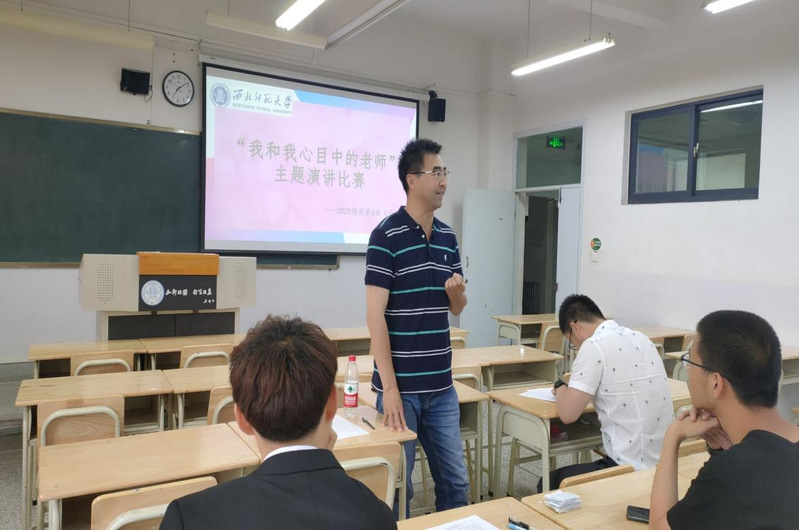 为提升同学们对教师行业的认知,激发学生对教师行业的热爱,2020级化学公费师范班于6月8日下午在校本部10A教学楼409教室举办了“我和我心目中的老师”主题演讲比赛。学院正处级辅导员孟汇海和2020级化学公费师范班班主任郭瑞斌参与评审。