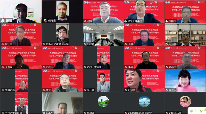 12月18日,由德赢与教务处、党委学生工作部、教学质量监控处、创新创业学院、教师教育学院、甘肃省教育学会化学教学专业委员会联合举办的“第五届中学校长论坛”在线上召开。来自甘肃省教育考试院、德赢vwin体育官网附属中学、兰州一中、兰州二中、酒钢三中、中科院兰州分院中学、兰州市第三十二中学、兰州民族中学、兰州四中、兰州市教育科学研究所、兰州市第二十七中学、甘肃省教科院、文峰中学、陕师大平凉实验中学、兰州市第八十一中学、兰州市第五十七中学、西和县第一中学等单位的二十多位中学校长、一线优秀教师参加论坛。