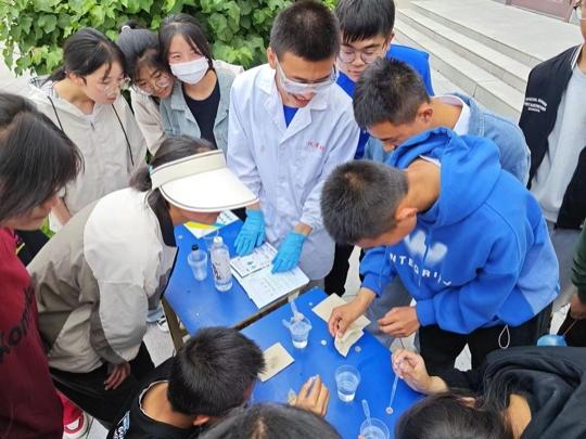 当日下午,实践团队与合作一中联合举办科普展演活动,此次活动由指导教师姚虹致辞。活动中,实践队成员通过讲解和现场实物演示,向在场学生生动地解释了“瓷器内在变色原理”“生活中的表面张力”“化学视角中的摩擦力”以及“保密书写”等科学原理和现象,让在场学生在轻松愉快的氛围中获得新的学习体验。实践队成员寄语合作一中学子,希望他们在未来的学习和发展中能够更加自信、积极地面对各种挑战,并为构建科技强国贡献积极力量。
