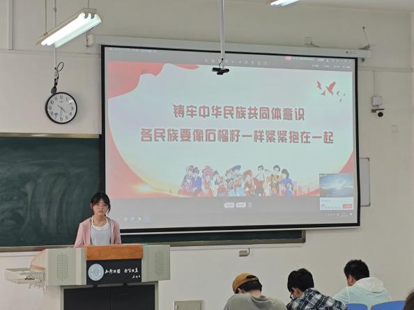 各班团结合“三会两制一课”,开展了以“铸牢中华民族共同体意识”为主题的团日活动,通过专题团课、集体研讨、观看纪录片等形式,深入学习铸牢中华民族共同体意识的历史渊源和现实意义,进一步提升了思想认知。