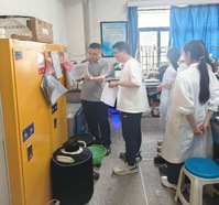 会后,由学院党委委员、学院领导班子成员、各党支部书记、学院楼层管理负责人以及师生代表组成7个安全检查小组,深入全院所有实验室开展安全隐患排查,重点检查危化品存放和管理台账、实验室卫生状况、电路私拉乱接、气体钢瓶固定情况等重点环节。对排查中发现的问题,检查组当场开展安全培训,指导师生现场整改,形成了“边检查、边培训、边整改”的工作模式。